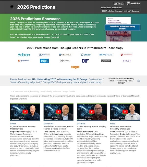The AvidThink team took a short break at the end of December, but we’re back in action with our Predictions 2026 series rolling out starting this week, as well as highlights from the Marvell Industry Analyst Day 2025 held mid-December. Check out our featured showcase at https://nextgeninfra.io/ and see the latest predictions from leading execs from Astera Labs, Credo, DriveNets, Graphiant, Intel, Marvell, Spirent, Viavi, Zayo, and with more coming.