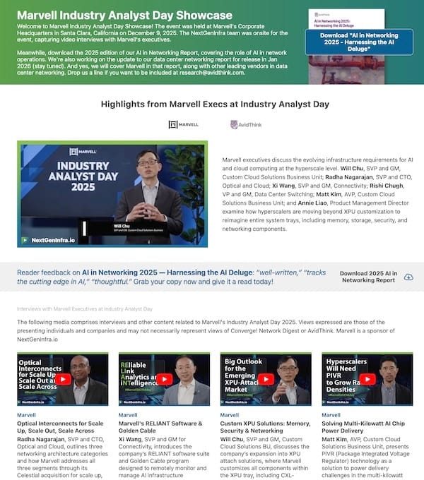 We have for your viewing pleasure Marvell Industry Analyst 2025 Showcase as well as the long-awaited Predictions 2026 series. Head over the NextGenInfra.io to check both of them out.