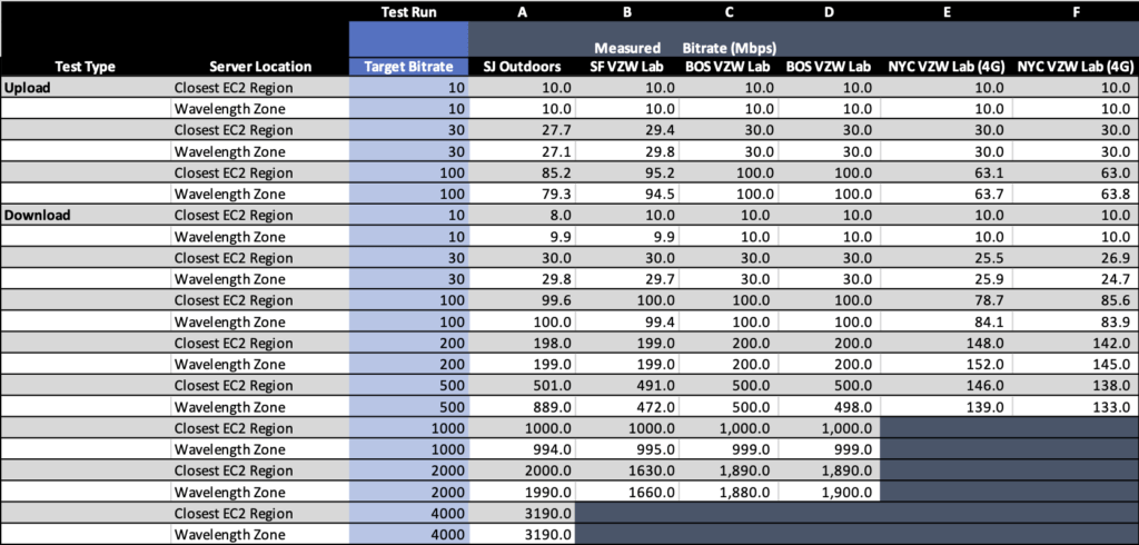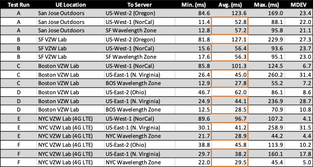 We are grateful to AWS and Verizon’s assistance, without which we would not have been able to so rapidly test two more Wavelength zones and run our tests in San Francisco (on top of our original San Jose-based test runs).